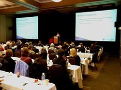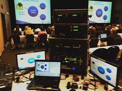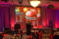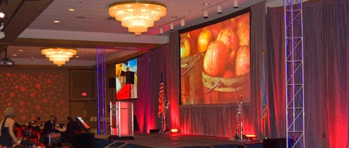 well the color dominated the room. With the presenter at the podium and the center