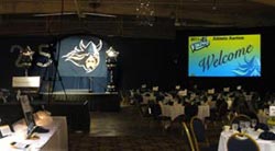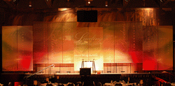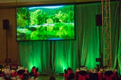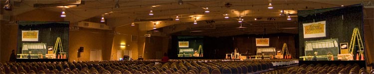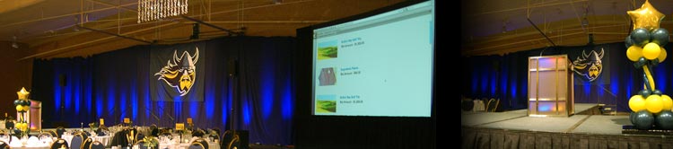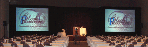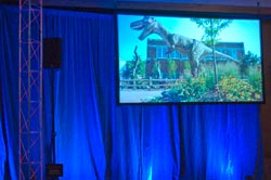 stage is a 11'x15' truss frame with rear projection using a 6500 lumen projector. We